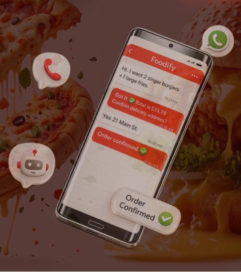 Foodify answers calls and WhatsApp, takes orders, confirms them, and sends them to your kitchen automatically.